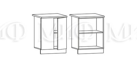 Глубина нижних шкафов без учета столешницы:490 мм, с учетом столешницы 600 мм