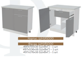 Глубина нижних шкафов без учета столешницы:490 мм, с учетом столешницы 600 мм
